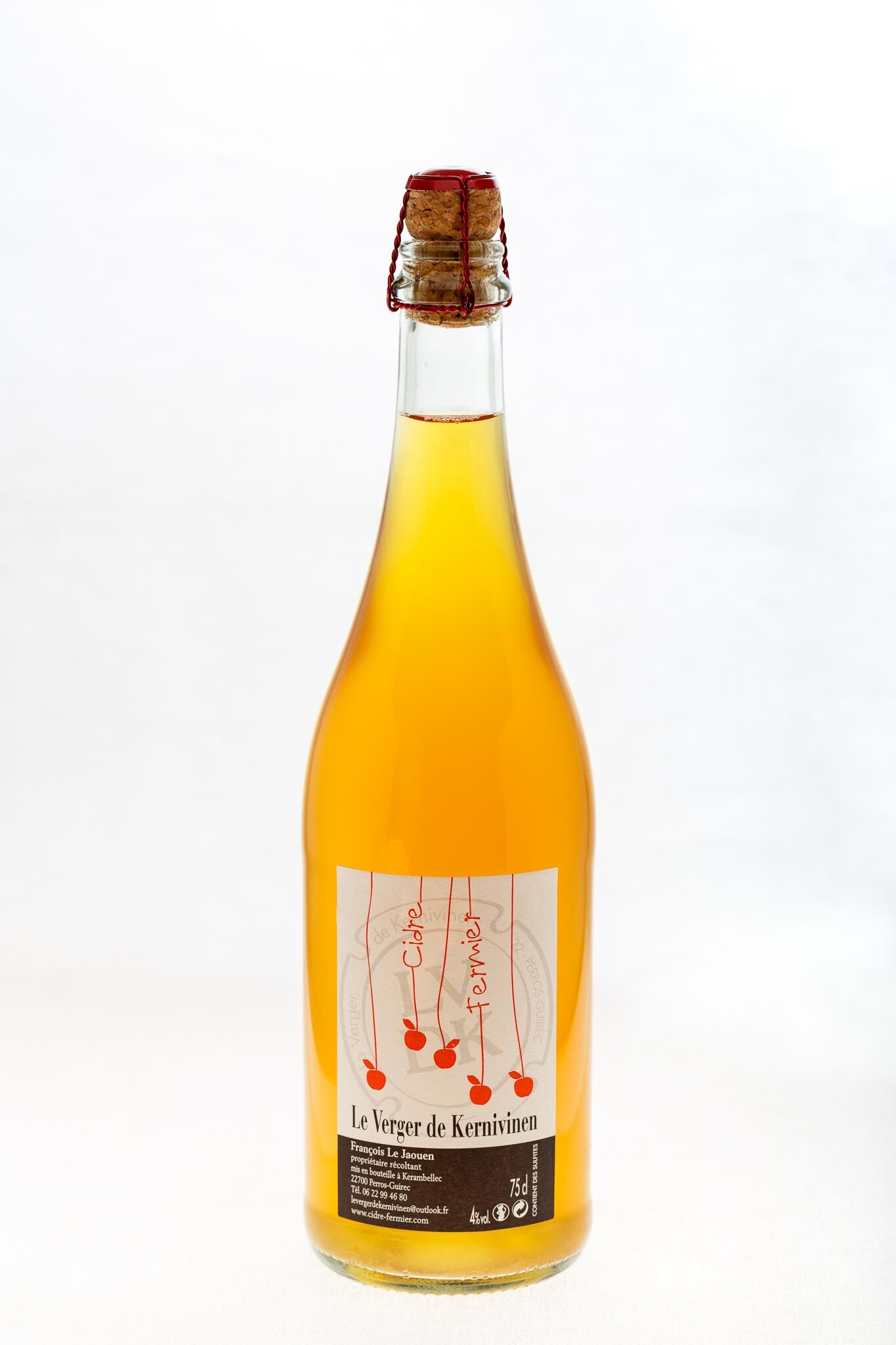 A l'issue d'une fermentation qui dure entre 3 et 5 mois, lorsque la densité est descendue à 1030 et que l'alcool titre à 4% Vol, on filtre les jus pour enlever un peu de dépôt et diminuer la population des levures indigènes afin qu'elles soient en nombre suffisant pour permettre la prise de mousse naturelle qui se fera au bout de 3 mois. La bouteille transparente met en valeur la couleur naturellement ambrée de ce cidre. Cette Cuvée Réserve sera idéale en apéritif et en dessert.